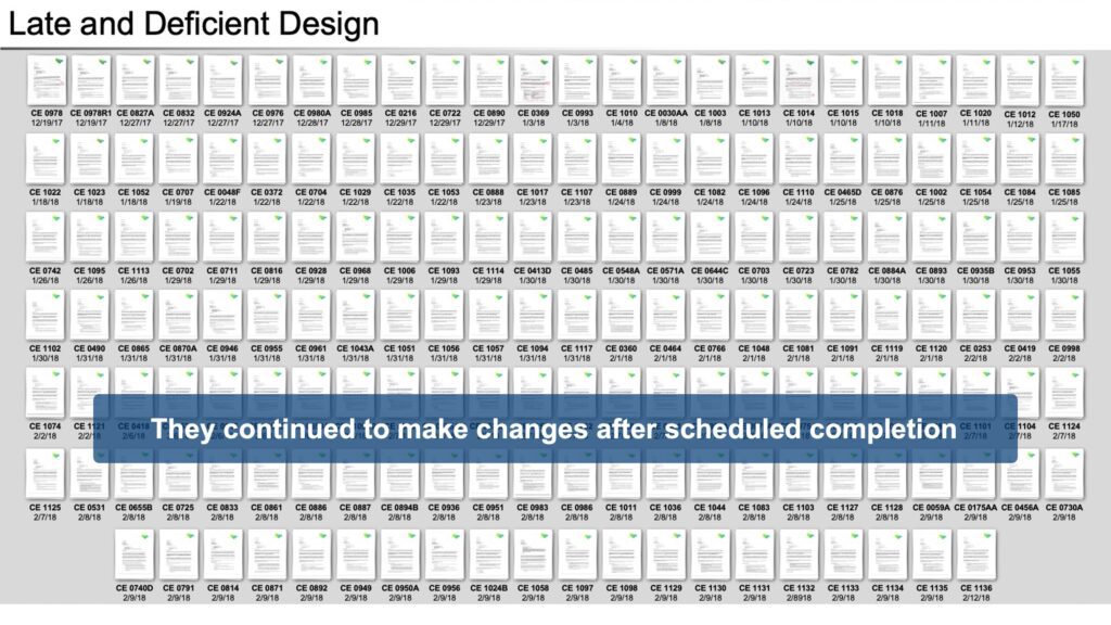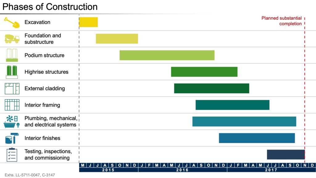 This complex breach of contract dispute required the development of clear and compelling visuals to educate jurors about the construction process and help them understand the roles and responsibilities of the different parties, the process for communicating and implementing design changes during the production phase, and how subcontractors were scheduled.