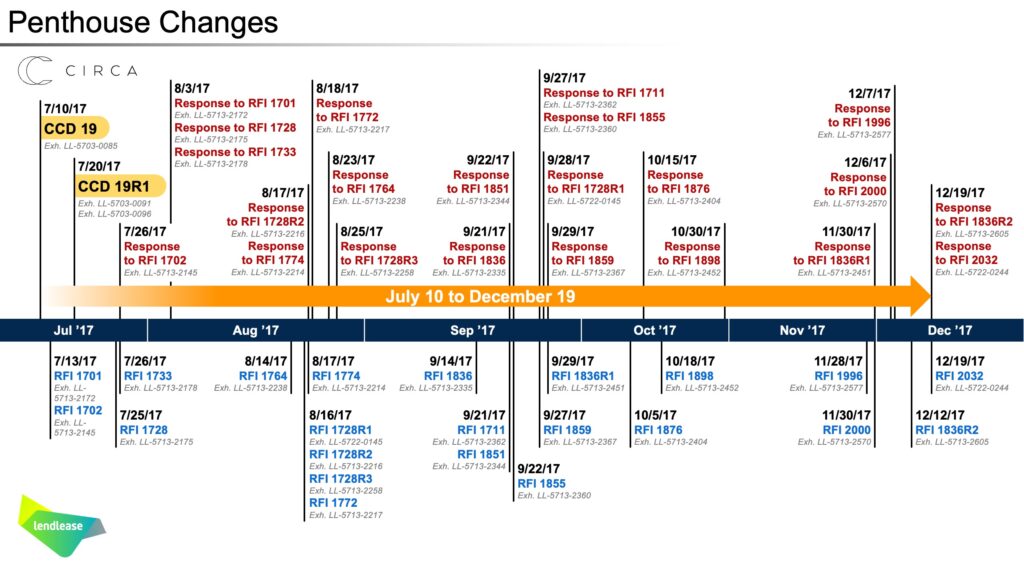IMS trial consultants and graphic designers worked with the Perkins Coie litigation team for 18 months before trial, as well as on site through the proceedings, to create extensive multimedia presentations for jury research, mediation hearings, and trial. Our team assisted expert witnesses in illustrating major case points, including the underlying design problems, the impact of incessant design changes, the subcontractor procurement process, the contract requirements, and schedule delays. Visuals were also designed to support the testimony of Lendlease project executives and project managers who led the construction effort. The 577-slide closing argument pulled together all the strands into a clear timeline and a coherent summary of the case, and it provided jurors with a roadmap to navigate the verdict form.